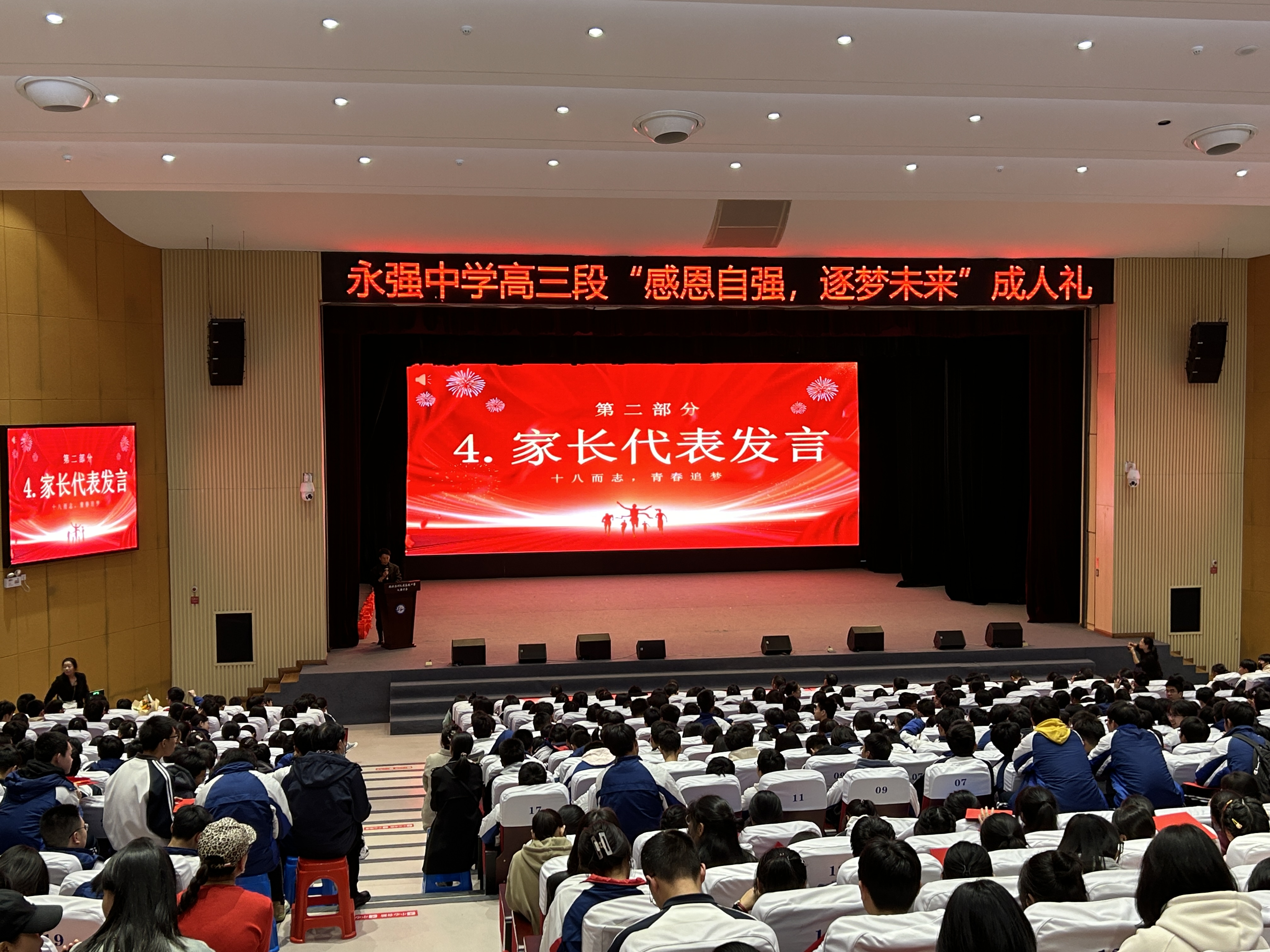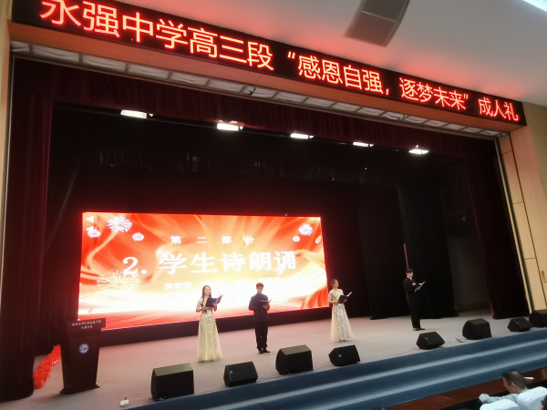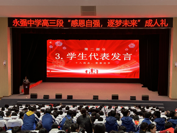接下来,学生代表进行了精彩的朗诵和发言,表达了对成长的感悟和对未来的美好期许,引起了全场师生的共鸣。号召同学们树立正确的人生目标,为未来的发展打下坚实的基础。