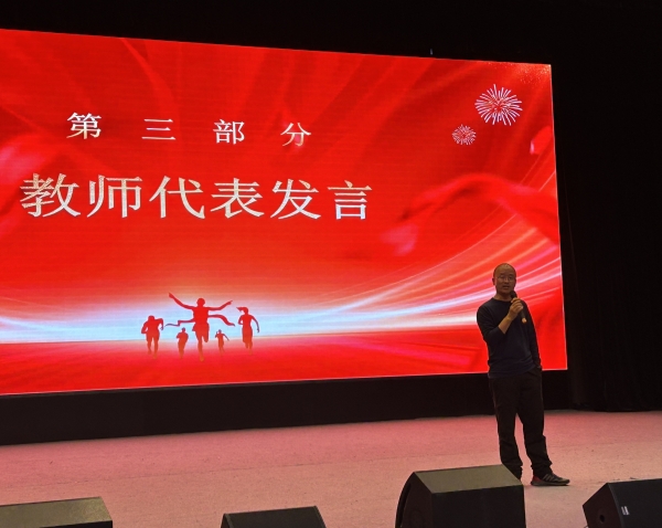 教师代表张宗远老师以“感恩”为关键词,寄语同学们要感恩父母,如山的父爱,如水的母爱,不能用金钱去衡量,也不能用语言去定义。我们要感恩师长,老师是唯一和你没有血缘关系而又无私护你成长的人,披星戴月,踩露踏霜,烦恼着你的烦恼,梦想着你的梦想。三尺讲台,一支粉笔,无怨无悔,两鬓成霜,才换来这春满校园、桃李芬芳。我们要感恩同学,要感谢同学们之间的砥砺共勉,并肩作战。父母情给了你温暖,师生情给了你方向,同学情则给了你力量。他希望同学们要感恩母校,在今后的日子,要自己学会顶天立地,还要慢慢学会为别人遮风挡雨,一定要以微笑的面孔面对责任,面对成长,以勇敢的姿态让这个如花的年纪诗意绽放。
