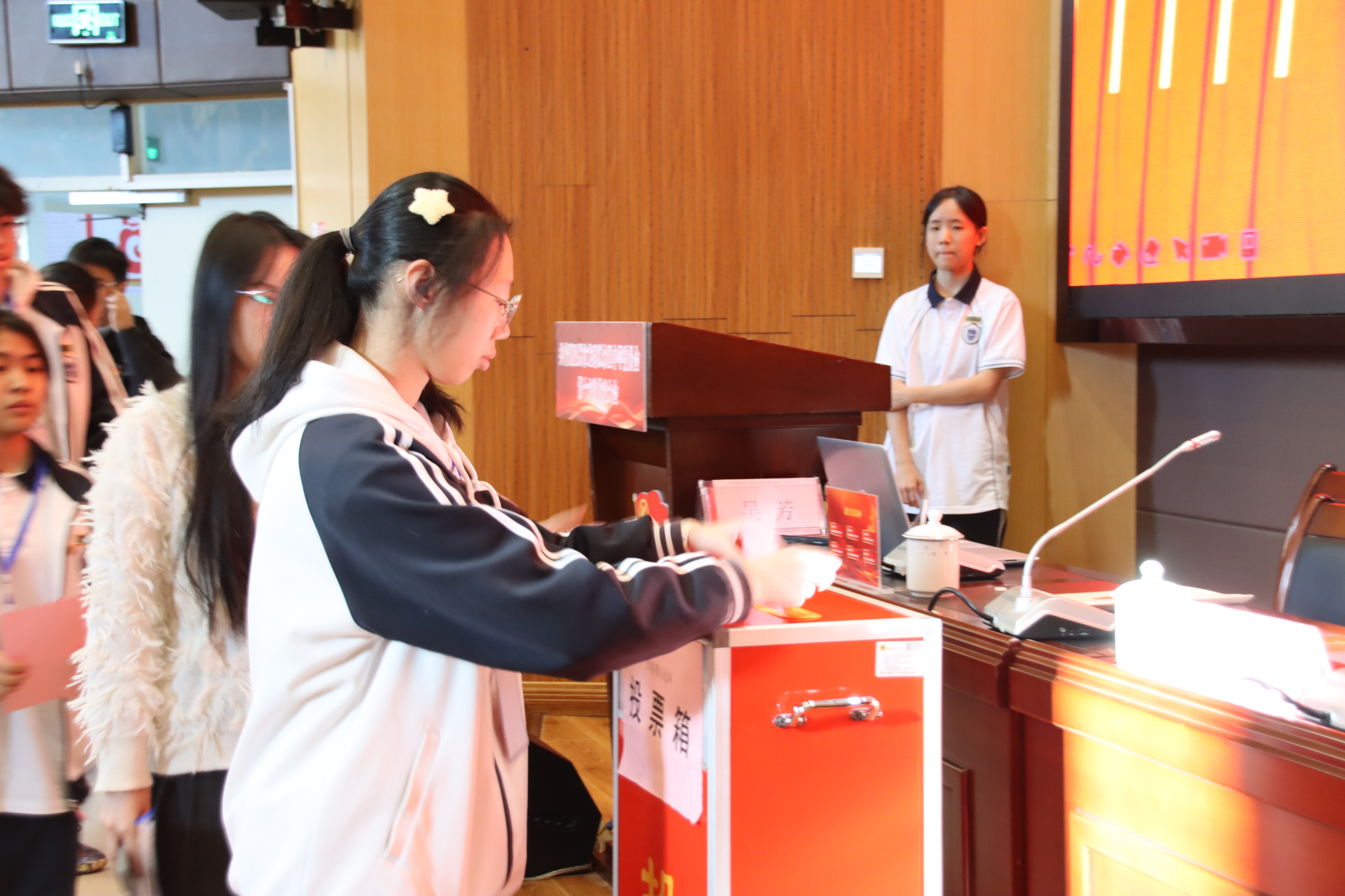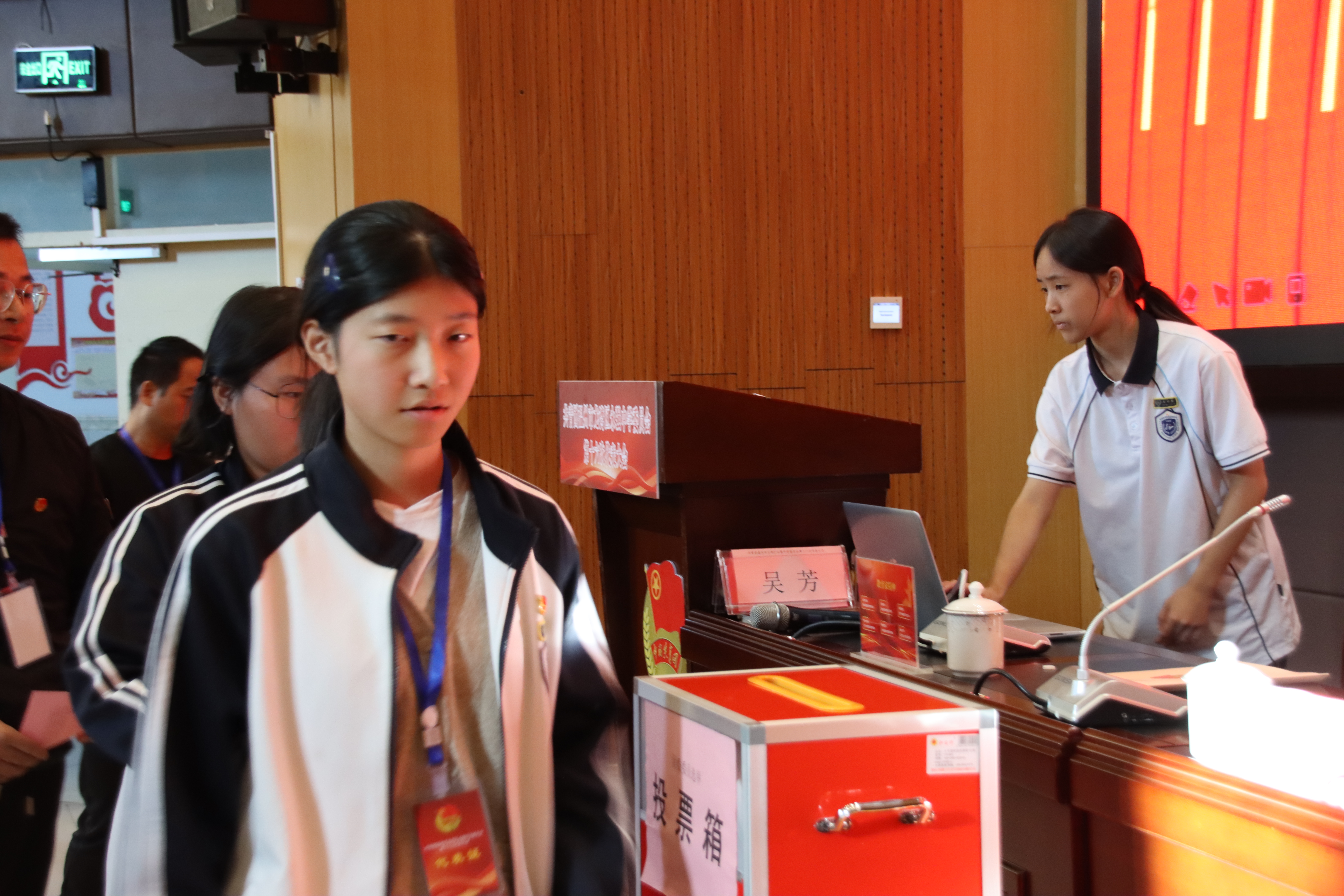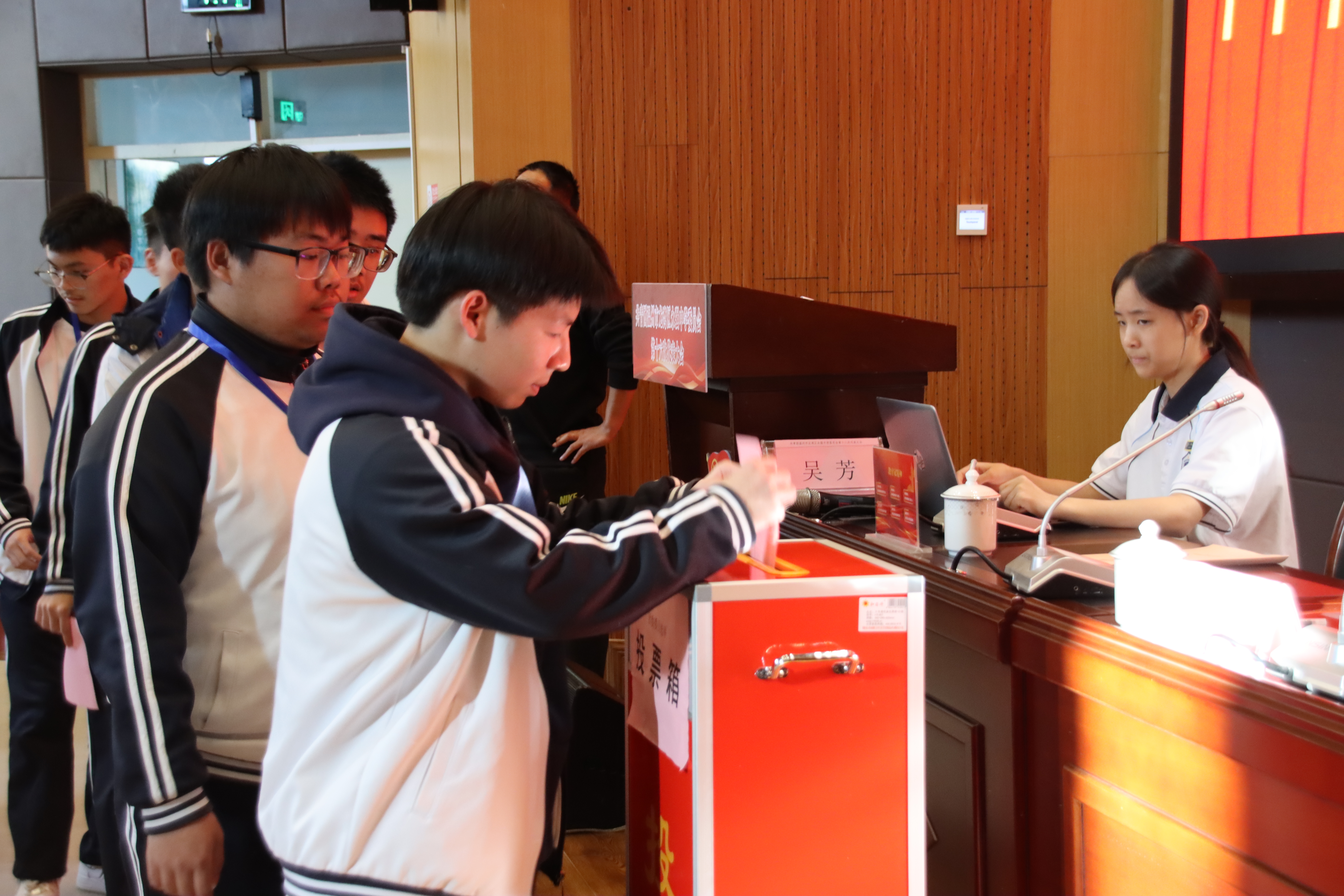 4点选举结果产生,会议进入第三阶段。总监票人汇报新一届委员的选举情况:新一届团委委员是郑好、邵雅柔、黄振轩、潘悦、濮陈然。之后,章蓉莲副校长对所有委员和团员做重要讲话。章蓉莲副校长在闭幕词中强调,本次大会是一次团结、胜利、催人奋进的大会。她向所有代表、领导和工作人员表示感谢,并期待新当选的团委委员能不负众望,紧密团结在学校党总支部周围,为培养“富有生命张力的现代公民”而努力。